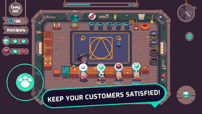The game features enchanting pixel art that brings the magical store and its surroundings to life. The whimsical art style adds to the enchanting atmosphere of Tiny Witch, making it a visual delight for players who love a charming and colorful game environment.