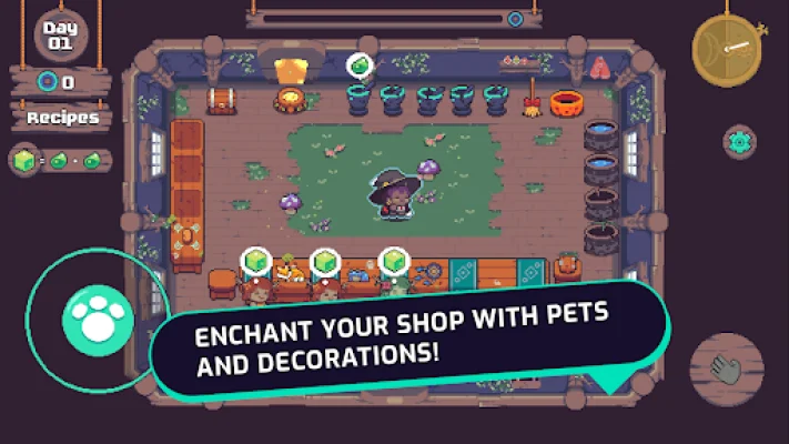 As you progress in the game, you can expand and improve your store by purchasing new resources, pounders, and more. You can also add decorations, pets, and new work tables to enhance the charm and efficiency of your store. And with diverse locations to manage, such as a mystical forest, a mysterious cave, and a vast desert, the world is truly your tiny witch's oyster.