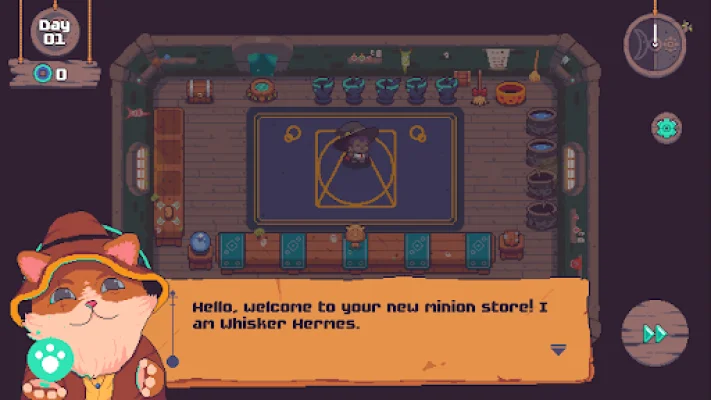 Speaking of pets, you can also add adorable creatures to your store that will not only bring charm but also help with small tasks. And let's not forget about the magical cat, Mr. Whisker Hermes, who will visit your store and bring you news.