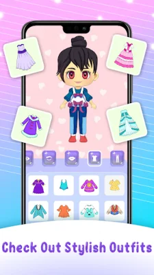 With 30 stylish backgrounds to choose from, you can set the perfect stage for your chibi dolls. Each background adds a unique touch to your dolls' story, whether it's a cozy bedroom, a bustling cityscape, or a dreamy garden. You can also add custom stickers and accessories to personalize your dolls and make them stand out even more.