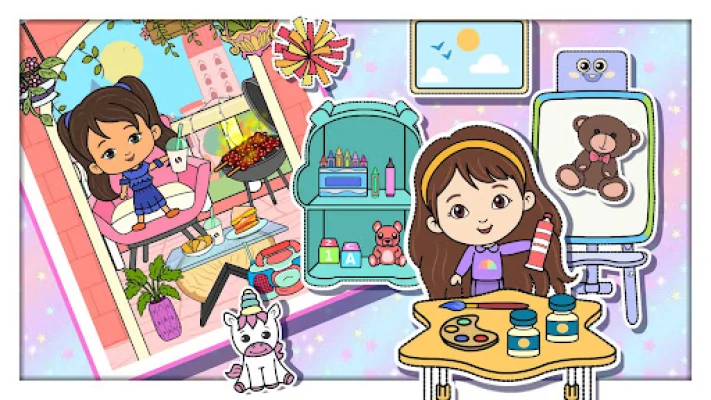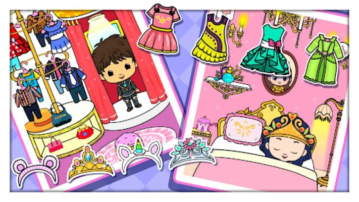 Explore vibrant scenes in the bustling city of Tizi Town, which serves as the backdrop for your imaginative journeys. You can travel between worlds of paper doll houses, a princess house, and captivating scenes that transport you to a land of limitless exploration. The cityscape is richly detailed, with charming cafes, boutiques, and playhouses that invite your role-playing adventures.