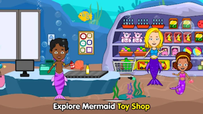 But that's not all, there are even more exciting features for our little underwater mermaids to enjoy. They can take a ride in a submarine and explore the vast blue ocean, or visit the beautifully designed mermaid home and play dress up as a princess stylist. And when they get hungry, they can head over to the underwater supermarket for some delicious snacks.