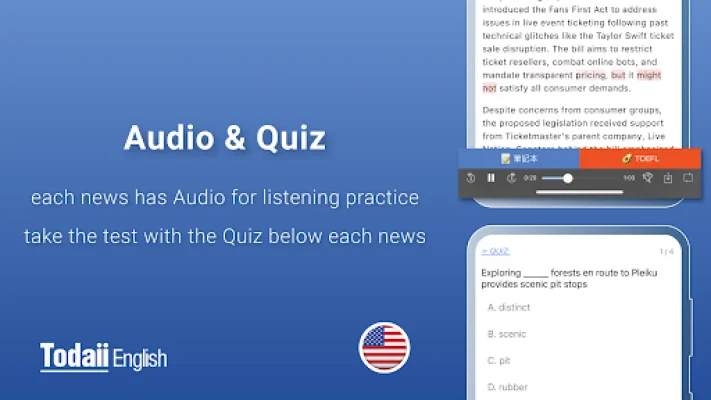 Learning English can be made easy with the help of the Todai Easy English News application. This app provides daily news articles in various levels of difficulty, allowing users to improve their English skills in listening, speaking, reading, and writing. With just 20 minutes of use per day, users can see significant progress in their language abilities within a month. The app offers a comprehensive learning experience, with features such as the ability to look up vocabulary directly in the articles, save new words for review, and even translate articles and share them with friends. It also includes an English-Vietnamese dictionary with grammar analysis and illustrated pictures to aid in memorization. Additionally, users can practice their listening skills with trending videos and top-quality podcasts. For those preparing for English proficiency exams like TOEIC, IELTS, or TOEFL, the app offers daily mock tests and exercises to help improve scores. It has been proven that reading English news regularly can significantly increase reading comprehension skills and improve exam results. The app is suitable for a wide range of users, including those who want to self-study English at home, increase their vocabulary, or improve their listening and speaking skills. It is also beneficial for those who have previously studied English but want to revise their knowledge and learn new methods. The diverse range of articles in the app exposes users to unfamiliar vocabulary, helping them avoid confusion during exams. The Todai Easy English News app not only helps users learn vocabulary effectively but also teaches them how to use it in everyday life. By reading news articles every day, users can also practice important reading skills such as skimming and scanning, which can be beneficial during exams. The app encourages daily use and helps create a habit of reading English news. It also offers a user-friendly interface and is constantly improving based on user feedback. With Todai Easy English News, learning English can be an enjoyable and rewarding experience.