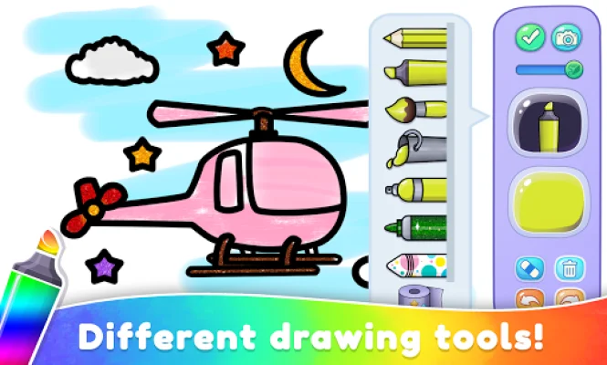 The coloring games in this app are filled with fun and colorful drawing and painting tools that are suitable for kids of all ages. There are different modes to choose from, including paint by pencils, brush, bucket, spray, glitter, and patterns. Kids can also use cute stickers and doodling modes to enhance their coloring experience.