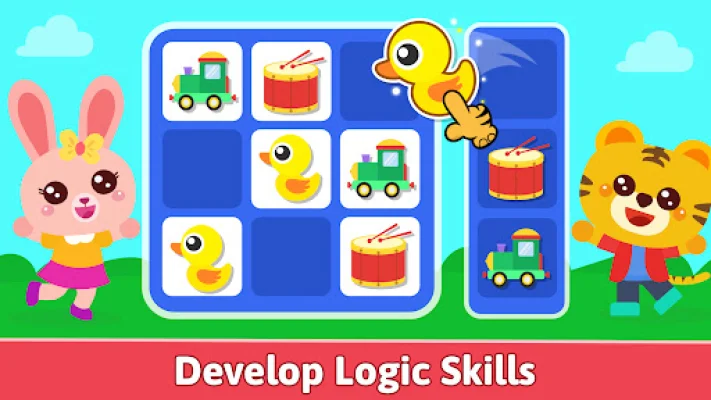 Other games included in the app are image slot and Sudoku-style puzzles, shadow matching, shape and color sorting, box puzzles, find the difference, memory flip, and matching cards. These games help children develop important skills such as logical thinking, problem-solving, shape and color recognition, memory, hand-eye coordination, and creativity.