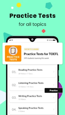 The TOEFL Prep & Practice app by EduRev is a comprehensive and user-friendly tool designed to help students prepare for the TOEFL iBT test. With over 100 practice tests and mock exams, this app offers extensive practice to improve your skills and boost your confidence for the actual exam. It covers all four sections of the TOEFL test – reading, writing, listening, and speaking – and provides additional resources to enhance your preparation.