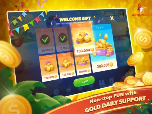The game also offers various key features, such as free gold that can be earned daily, welcome gifts for new players, and the ability to create your own channel and decide on bets. Players can also easily connect with others through Facebook, Google, or a Zing Account. This allows for a seamless and convenient gaming experience, whether you're at home or on the go.
