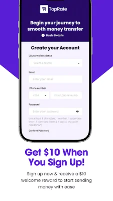 But that's not all – when you sign up for TopRate Transfer, you'll receive a $10 welcome reward. That's right, just for joining our community, we'll give you $10 to use towards your first money transfer. It's our way of saying thank you for choosing us and trusting us with your hard-earned money.