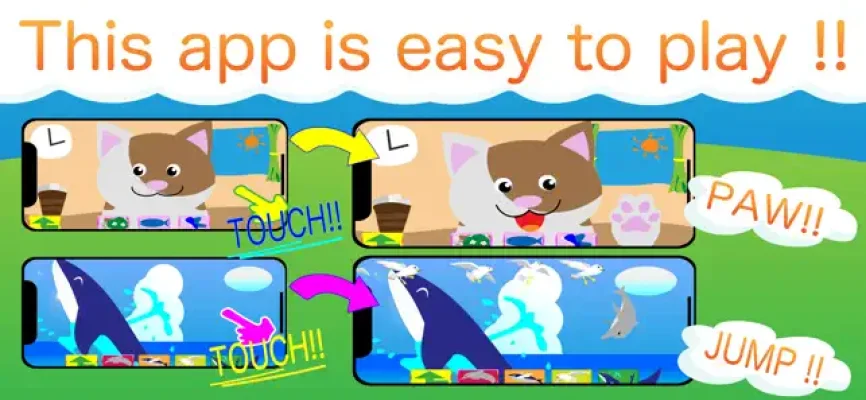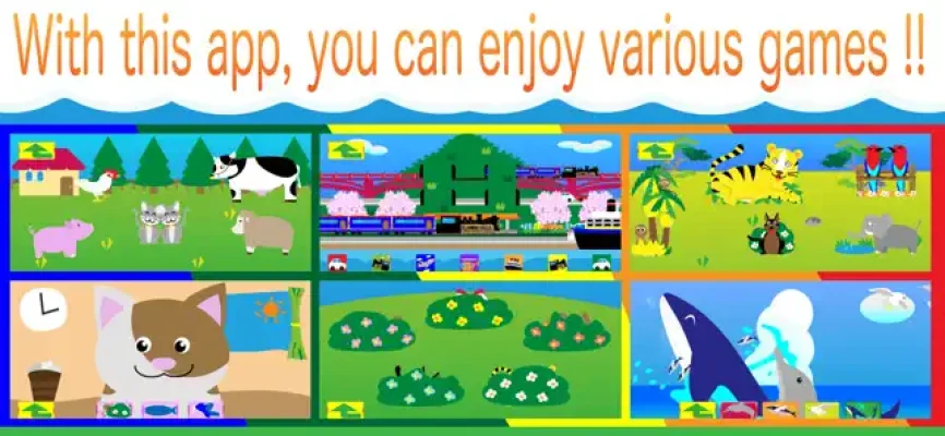 This application is a fun and interactive game that offers support for both Japanese and English languages. It provides users with six different ways to play, each offering a unique and entertaining experience. Players can choose to touch and interact with randomly moving animals or use buttons to control a vehicle and navigate through the game.