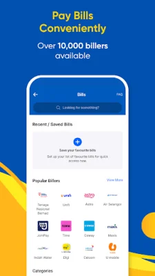 The eWallet also offers a wide range of payment options for your shopping needs, both in-store and online. You can pay at popular stores like Tesco, Mydin, Jaya Grocer, and more, as well as enjoy free food delivery from DeliverEat and EASI when you use your eWallet. Additionally, you can conveniently pay bills through JomPAY to over 10,000 billers, including utilities, PTPTN, postpaid, and Astro.