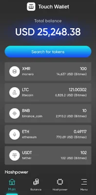 One of the main functions of Touch Wallet is its ability to securely deposit, store, and withdraw various cryptocurrencies. The app also allows you to monitor the current rates of cryptocurrencies and view the balance of your crypto wallets in both cryptocurrency and USD equivalent. Additionally, Touch Wallet offers two color schemes, light and dark, to suit your personal preferences.