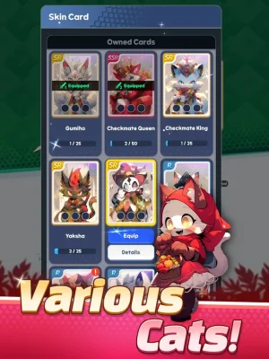In addition to the exciting action and gameplay, the game also offers cute cats and character skins. Players can collect different outfits for their cat, each with unique abilities that can help them in battle. This adds a fun and customizable element to the game, allowing players to develop their own cat and playstyle.