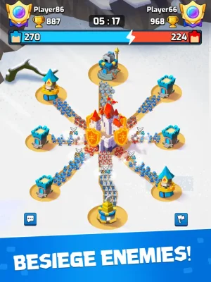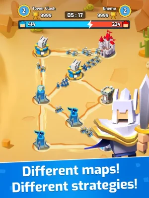 Experience the thrill of tower battles in Tower Clash, the latest real-time strategy game from the creators of Art of War: Legions. With a focus on troops and towers, this game is easy to pick up and play, but offers endless opportunities for improving your battle strategy and tower attack timing as you progress through the game. Compete with other players to increase your Arena Level and ultimately face off against the world's best in the Champion League, fighting for glory and dominance.