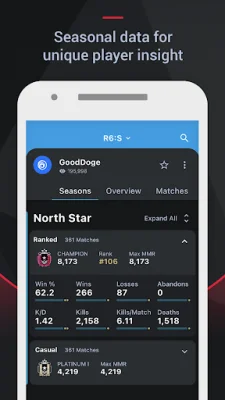 The STREAK app is a tool that helps users track and maintain a daily streak, allowing them to see their progress through weekly reports. It also offers an overview of player summaries based on recent matches, with the ability to filter data by seasons, playlists, stats, characters, and more. Users can also track details for matches, including rosters, post-match stats, player ratings, performance graphs, and history tracker. By signing in, users can access a personalized tracker for popular games like Valorant, R6 Siege, and League of Legends, receiving session reports with insights and improvement tips. The app also features leaderboards to track top players by rank, K/D, and more, with the option to filter by region and game. Users can save profiles as favorites for easy access and compare themselves with friends and foes. The app also provides news updates about the games it supports and the gaming industry. It currently supports popular titles such as Valorant, R6 Siege, League of Legends, and Apex Legends, with features like tracking recent matches, user-submitted lineups, and analyzing the current meta. Users can also find players using the LFG feature. The Tracker Network app offers unique insights and stats for every game it supports, helping users understand their performance and improve their gameplay. With features like tracking recent matches, understanding the current meta, and viewing detailed performance info, the app is a valuable tool for gamers. It supports a wide range of titles, making it a comprehensive resource for players looking to track their progress and stay updated on the latest news in the gaming world.