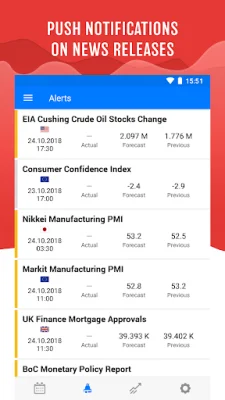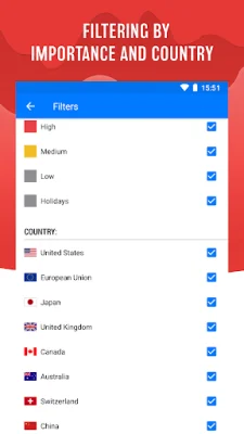 The application offers over 600 indicators from the ten largest global economies, including the USA, European Union, Japan, UK, Germany, Canada, Australia, New Zealand, Switzerland, and China. As these regions' economic policies can have a significant impact on financial instruments, staying informed about their news and events is crucial for successful trading.