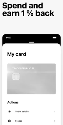 Earn 3.75% interest on unlimited cash with our new Trade Republic IBAN. With this subscription-free card, you can easily and safely invest just 1€ and start earning money every month. Plus, enjoy the flexibility to withdraw your funds at any time.