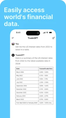 TradeGPT is a powerful application that provides users with access to a vast array of financial data. This includes company insights, key economic indicators, and market updates, all of which can greatly enhance your trading performance. With TradeGPT, you'll have all the tools you need to make informed and strategic trading decisions.