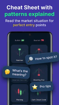TradingCake is an app designed for both stock and crypto traders who want to improve their market analysis skills. It offers a dual-core structure that caters to the needs of all traders, making it accessible and effective for learning and applying candlestick patterns. The app provides a mini trading course with step-by-step lessons that cover charts, candlestick patterns, and the basics of price action trading. It also offers a free candlestick cheat sheet that explains each pattern in detail, allowing traders to quickly understand and apply them to their trades. Additionally, there is a trading quiz that helps users test their knowledge and develop pattern recognition skills in a risk-free environment. One of the key features of TradingCake is its real-time pattern detection, which allows traders to stay ahead by identifying essential candlestick patterns like Hammer and Inverted Hammer directly from the live market. This feature is supported by expertly written educational content, interactive quizzes, and a pattern analysis tool that can be applied to both stock and crypto markets. The app supports a variety of instruments, including major FX pairs like EUR/USD and GBP/USD, cryptocurrencies like BTC/USD and ETH/USD, and indices like SPX and DJIA. It also provides updates on market indices like FTSE and NSEI, allowing traders to keep a pulse on the market. TradingCake is designed for those who are serious about improving their trading skills, whether they are beginners or experienced traders looking to refine their strategies. It serves as a stepping stone to becoming proficient in the financial markets. However, it is important to remember that trading is risky and there is a possibility of losing invested capital. The information provided in the app is for educational purposes only and should not be considered as financial advice or investment recommendations. Users are advised to read and agree to the terms and conditions and privacy policy before using the app. So, if you're ready to elevate your trading intelligence and unlock the power of candlestick patterns, download TradingCake now!