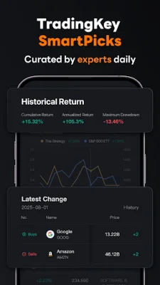 TradingKey Smart Strategies is another feature of the app that helps users capture excess returns. It offers stock picks based on market trends and quantitative multi-factor strategies, as well as an intuitive display of portfolio performance and strategy returns. Users can also receive insightful and targeted analysis from investment managers on key holdings.