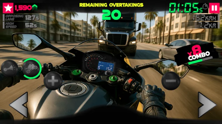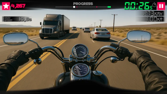One of the key features of Traffic Rider is its first-person camera view, which enhances the feeling of being on the road. The game also offers detailed settings with dynamic traffic in various locations, as well as real motorbike sounds to further immerse you in the gameplay. With over 100 challenging missions in career mode, there's always something new to try in this casual yet realistic environment.