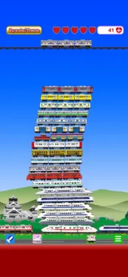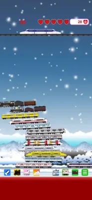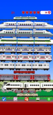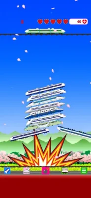 This application is a fun and interactive game where you can control a train car at the top of the screen and move it left and right. The goal is to release the train car in a strategic spot so that it falls down and creates a messy and chaotic scene. The falling vehicles will bounce and slide, allowing you to stack them high and create even more chaos. There are 35 different types of Shinkansen trains and over 50 types of conventional lines that appear randomly, adding variety to the gameplay. You can also use special items to add even more excitement to the game, such as steam locomotives, freight trains, streetcars, and linear motor cars.