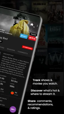 The TRACK application allows users to keep track of the shows and movies they watch, discover popular content, and share their thoughts and recommendations with others. Users can check in to the shows and movies they are currently watching, as well as mark episodes and movies they have previously watched. The app also provides a detailed history of everything the user has watched. With an index of over 1 million shows and movies, users can easily keep track of their viewing habits.