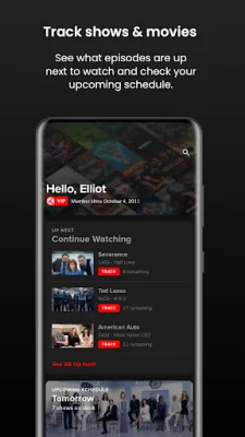 The app also features a personalized and global calendar of episodes and movies, as well as personalized stats about the user's watching habits. VIP members have access to a year in review for each year they have watched something, as well as all-time stats to summarize their entire watching career. The SHOW PROGRESS feature allows users to quickly see what they should watch next, get detailed progress about episodes they have watched, and view show, season, and episode progress. VIP members can also rewatch shows and recalculate progress.