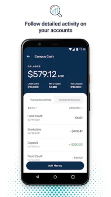 The eAccounts mobile application offers a convenient and secure way for users to manage their campus or institution accounts. With this app, users can easily view their account balances and track recent transactions, providing them with a clear understanding of their financial standing. Additionally, users can add money to their accounts using a previously-saved payment method, making it quick and hassle-free to add funds when needed.