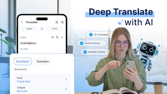 This application is a comprehensive language translator that allows users to instantly translate text, spoken words, and even photos in over 150 languages. It goes beyond just providing translations, as it aims to build bridges and break barriers between different languages and cultures. The app offers a variety of features that make it a one-stop translation partner. Users can simply point their camera at signs or menus to get instant on-screen translations. They can also have real-time, two-way conversations with the help of the voice translator. Additionally, the app allows users to translate text from saved photos and even has a translator keyboard for translating messages in any app. One of the unique features of this app is its ability to translate text from photos in the user's gallery. This makes it easy for users to understand foreign text without having to type it out. The voice translator also stands out as it provides real-time translations for both sides, making communication effortless. The translator keyboard is another useful feature that allows users to translate messages in real-time within any app. This eliminates the need to switch between apps, making chatting with people from different languages seamless. The app also has an offline mode, where users can download language packs for reliable translations even without Wi-Fi. This makes it a perfect travel partner, giving users peace of mind in areas with limited internet access. The app is suitable for a wide range of users, including travelers, students, professionals, and anyone looking to connect with friends and family from different cultures. It helps users navigate new cities, ace language classes, communicate with international clients, and connect with people from different backgrounds. In conclusion, this all-in-one language translator is a must-have for anyone looking to break language barriers and connect with the world. With its various features and user-friendly interface, it makes every conversation understandable and effortless. So why wait? Download Translate: AI, Camera & Voice now and start connecting with the world!