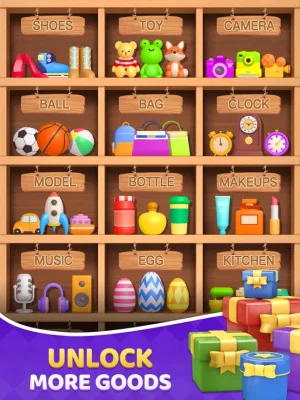 This game is all about sorting goods and having fun while doing it. It features beautifully designed levels in a 3D environment, making the gameplay even more enjoyable. The goods in the game are also designed to look realistic, adding to the immersive experience. The gameplay itself is simple and easy to understand, making it accessible for players of all ages. Plus, there are generous rewards in the form of props and gold coins to keep players motivated.