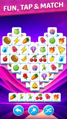 The gameplay is simple - match three identical tiles and tap on them to collect them. As you progress through the levels, the game becomes more challenging and requires strategic thinking. You must figure out which tiles to collect in order to make space for new ones and avoid filling up the collection bar completely.