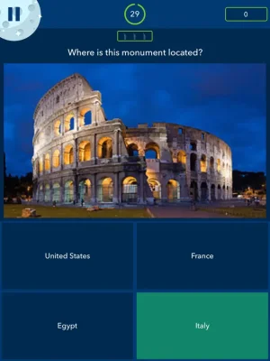 One of the best features of this app is the variety of ways you can play. You can identify monuments from pictures, locate countries on a map, and even test your knowledge of flags. Each round consists of 10 questions, and you have 30 seconds to answer each one. The faster you answer, the more points you earn. Plus, you have 3 lives available in each game, so you won't lose points if you make a mistake.