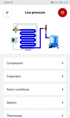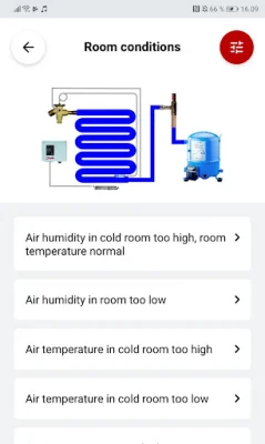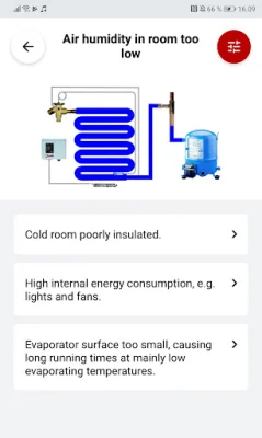Using Troubleshooter is simple and straightforward. Upon opening the app, you will see a refrigeration system divided into four main areas: low pressure, high pressure, compressor, and liquid line components. By selecting one of these areas, you can easily search for potential symptoms and their corresponding causes. The app also allows you to switch between the symptom/cause and solution pages seamlessly.