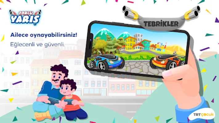 TRT Zorlu Yarış, çocuklar için özel olarak tasarlanmış kolayca oynanabilir bir oyundur. Güvenli ve reklamsız içeriği sayesinde ailelerin de rahatlıkla çocuklarına oynatabileceği bir oyundur. Ayrıca çocuklara özel ekranlarla daha keyifli bir oyun deneyimi sunar.