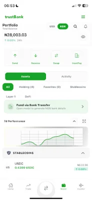 TrustBank is a digital wallet that allows you to easily manage both crypto and fiat currencies. It offers a variety of features such as a multi-currency wallet, instant transfers, and currency conversion. With TrustBank, you can also book flights and make payments, making it a convenient all-in-one solution for your financial needs. One of the key features of TrustBank is its multi-currency wallet, which supports NGN, USD, and major cryptocurrencies like BTC, ETH, USDT, and USDC. You can easily track your balances in real-time and securely store your currencies with industry-leading encryption. TrustBank also offers easy currency conversion and swaps, making it simple to manage your different currencies. Sending and receiving money is made effortless with TrustBank. You can make instant transfers to friends and family, scan QR codes for quick payments, and use both crypto and fiat currencies. TrustBank also has low transaction fees, making it a cost-effective option for managing your finances. For those interested in crypto trading, TrustBank offers a seamless currency exchange with competitive rates and transparent fees. You can also convert NGN to crypto and track real-time market prices. Additionally, TrustBank has its own flight booking service, trustAir, where you can pay with either crypto or fiat and receive digital e-tickets instantly. TrustBank also caters to merchants with its trustPay feature. Merchants can accept payments, generate QR codes for easy checkout, and receive real-time transaction notifications. The app also offers a merchant dashboard with analytics to track sales and revenue. Security is a top priority for TrustBank, with PIN protection, biometric authentication, and multi-layer encryption. KYC verification is also available for enhanced security. Other features of TrustBank include P2P trading, portfolio tracking, and a user-friendly interface. You can buy and sell crypto peer-to-peer with escrow protection, track your assets and transactions, and view performance analytics. TrustBank also prides itself on its fast transactions, low fees, and 24/7 support. To get started with TrustBank, all you need to do is download the app, create an account, complete KYC verification, and start managing your finances. It is perfect for crypto enthusiasts, frequent travelers, business owners, freelancers, and anyone looking for a better way to manage and spend money. TrustBank supports a variety of currencies, including NGN, USD, BTC, ETH, USDT, USDC, BNB, SOL, XRP, DOGE, and more. It is available for download now and offers a user-friendly, secure, and all-in-one solution for your financial needs. TrustBank is your partner in financial freedom, from your first Bitcoin purchase to advanced trading and making payments. Download it today and experience the future of digital inclusive finance. For support, you can contact TrustBank via email or visit their website. It is important to note that cryptocurrency trading involves risk and should be done responsibly. TrustBank is committed to providing a secure and reliable platform for all your financial needs.