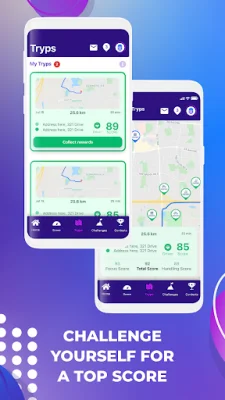 Compete for top scores with TrypScore, the ultimate driving app! With automatic start and stop detection, you never have to open the app before you drive. Earn your driving score based on 10 different skills, including weather, traffic, and merging, to accurately reflect your driving conditions. Plus, collect Pyns for safe driving scores and gain access to contests and rewards!