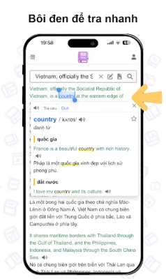 This application is designed to help users quickly translate paragraphs of text and look up irregular verbs and adjectives. It allows users to simply click on a word or highlight it to quickly search for its translation. Additionally, users can also search for words using voice commands or images. One of the most convenient features of this app is that it can be used offline, meaning users can still translate words without an internet connection.