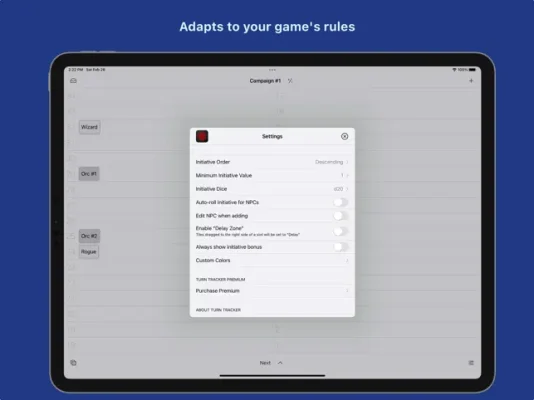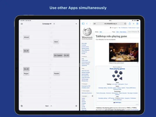 Initiative determination, changing turn order, and starting new encounters can all be done in a matter of seconds with Turn Tracker. The app fully supports both landscape and portrait orientations, as well as slide-over and multitasking, so you can easily access other resources like PDFs or the web without having to switch between apps.