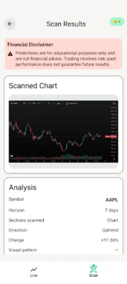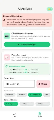 The app's key features include providing stock market information and price trends, AI-based share value predictions, and technical analysis and market indicators. Additionally, users can upload charts, candles, or patterns in the "Chart Pattern Section" to receive next price predictions using AI for educational purposes. Users can also enter their interested company name in the Target Assets section to predict the price.