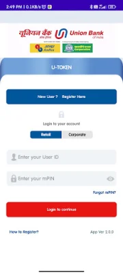 Once the registration is successful, a confirmation SMS will be sent to the user's registered mobile number. The next step is to download and install the U-TOKEN app on their mobile device. New users can register for the app by tapping on the "New User? Register Here" option and completing the registration process within the app.