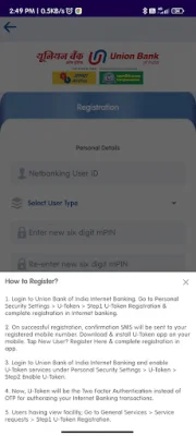 The registration process for U-TOKEN is simple and can be completed through the Union Bank of India Internet Banking portal. After logging in, users can go to the Personal Security Settings and select U-Token. They will then need to complete the registration process by following the steps provided.