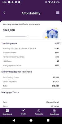 In conclusion, this application is a valuable resource for anyone looking to purchase a home. It allows you to monitor your credit score, calculate your home-purchasing power, and track your progress towards your down payment goal. With a focus on privacy and user-friendliness, this application is a reliable and helpful tool for anyone on their journey towards homeownership.