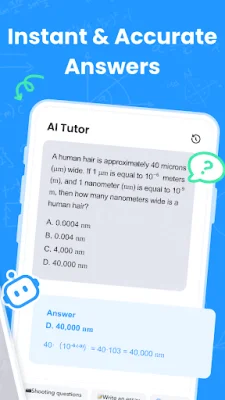 Uknow.AI is an advanced artificial intelligence application that combines our latest AI technology with ChatGPT to provide high-quality and accurate answers. This not only makes learning more efficient, but also brings unprecedented convenience to the learning process. With 24/7 availability, Uknow.AI acts as a round-the-clock tutor, providing step-by-step solutions for all subjects in elementary, middle, and high schools, including math, physics, and chemistry. One of the key features of Uknow.AI is its simple and convenient photo searching. By scanning a photo of a math problem, the image recognition technology can quickly and accurately identify the question and provide a complete answer explanation within seconds. This feature is useful for both simple arithmetic operations and complex function graphs. Uknow.AI aims to make learning easier and progress less challenging by accompanying users throughout their growth and helping them achieve their learning goals. It is designed to be used in various scenarios, such as encountering challenging problems while doing homework, struggling to understand explanations without a teacher nearby, or having trouble with fraction calculations, factorization of polynomials, and equations. In addition to its main features, Uknow.AI also offers other useful tools such as Wrongs, which allows users to add questions they got wrong and categorize them for review, and Smart Calculator, which is more than just a traditional calculator and can solve equations and provide detailed solving steps. These features are designed to help students learn how to solve equations and calculation questions effortlessly. Uknow.AI is available for free download and can be used for a variety of purposes, from homework help to studying for exams. However, users are required to agree to the Uknow.AI User Agreement, which can be found at https://www.uknowai.com/cm/agreement/en. So why wait? Download Uknow.AI now and make your learning journey easier and more efficient!