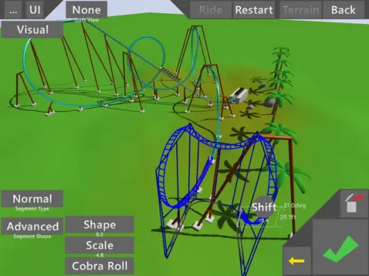 This application is a roller coaster simulation game that offers a variety of features for both casual and advanced users. The controls are designed to be simple and easy to use, making it accessible for anyone to play. However, for those who are more experienced and want more control, there are advanced options available as well.
