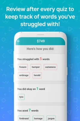 It's important to note that the app awards points in the form of dollars, but this is just play money and has no real monetary value. The app is not affiliated with any of the registered trademarks mentioned, such as GRE, SAT, TOEFL, and IELTS. It simply aims to help users improve their vocabulary skills and prepare for various exams. So, if you're looking for a fun and effective way to expand your vocabulary, give this app a try and see how addictive it can be!