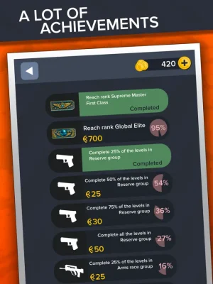 In summary, this application offers a fun and challenging way for players to test their knowledge of Counter Strike skins, weapons, and esports players. With three different modes and various achievements to unlock, players can continuously improve their skills and compete with others to reach the highest ranks. The inclusion of real market prices for CSGO weapons adds an extra layer of realism to the game. Whether you are a casual player or a hardcore fan of Counter Strike, this application offers something for everyone.