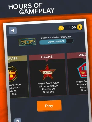 Casual mode offers over 500 levels, including the newest Counter Strike cases. Players can also check the real market price of each CSGO weapon. In Competitive mode, players must select the correct weapon skin name from four possible options. There is a target score for each game, and the faster the player clicks the correct answer, the more points they will earn. XP points are also rewarded for achieving the target score, which can be used to progress in the player's career. The ultimate goal in Competitive mode is to reach the highest possible Counter Strike rank and become a Global Elite. Depending on the player's rank, they can enter different arenas such as Dust, Overpass, Cache, or Mirage.