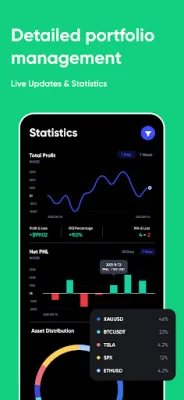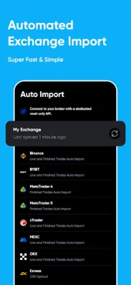UltraTrader also offers an automated exchange import feature, which allows users to import trades automatically from top brokers such as Binance, KuCoin, MEXC, MT5, and MT4. This feature can also be customized by users to vote for additional exchanges to be added in the future. The app also provides detailed portfolio management, with live updates and statistics on total profit, net PnL, and asset distribution. This allows for informed decision-making and efficient management of one's portfolio.