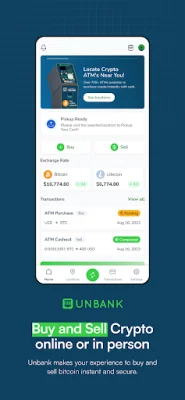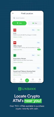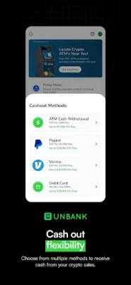 Unbank is an application that allows users to easily buy and sell cryptocurrency for cash at over 20,000 ATM kiosks. This means that users can conveniently access their funds in physical form, making it easier to use and spend in everyday transactions. To use the app, users simply need to find a nearby Unbank supported location, input the amount of cryptocurrency they wish to sell, and send it to the provided invoice address. Once the transaction is complete, users can redeem their cash at the Unbank supported location.