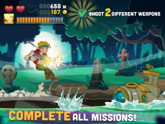 Embark on a thrilling adventure through 9+ stages, including a creepy cemetery and a post-apocalyptic city. But don't worry, you won't be facing these metal zombies unarmed. Choose from a variety of powerful weapons, from heavy machine guns to laser guns and flamethrowers. And that's just the beginning - there are even more weapons waiting to be discovered!